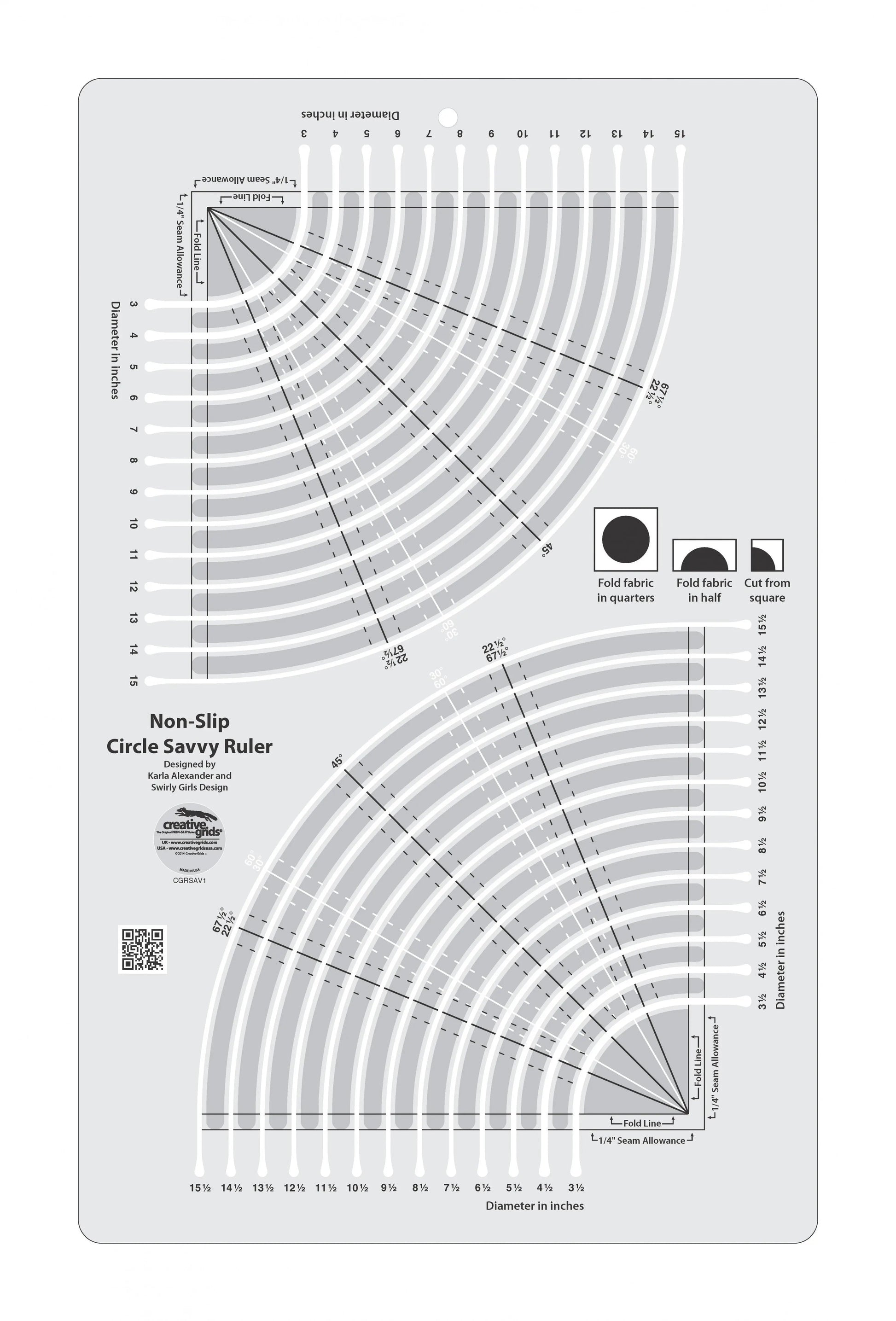 Creative Grids Circle Savvy 11-3/4in x 18-1/2in Quilt Ruler