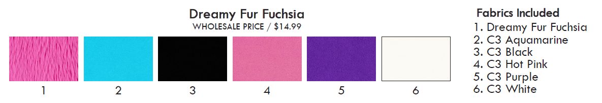 Create a variety of fun designs from stuffed animals to pillows and more with our Dreamy Fur Fun Pack! A bundle comprised of one (38" x 19") piece Luxe Cuddle® Dreamy Fur and an assortment of five complimentary (9" x 12") C3 solid minky fabrics. Perfect for all skill levels! Find inspiration from one of our free patterns within our Learning Center or create an original design.