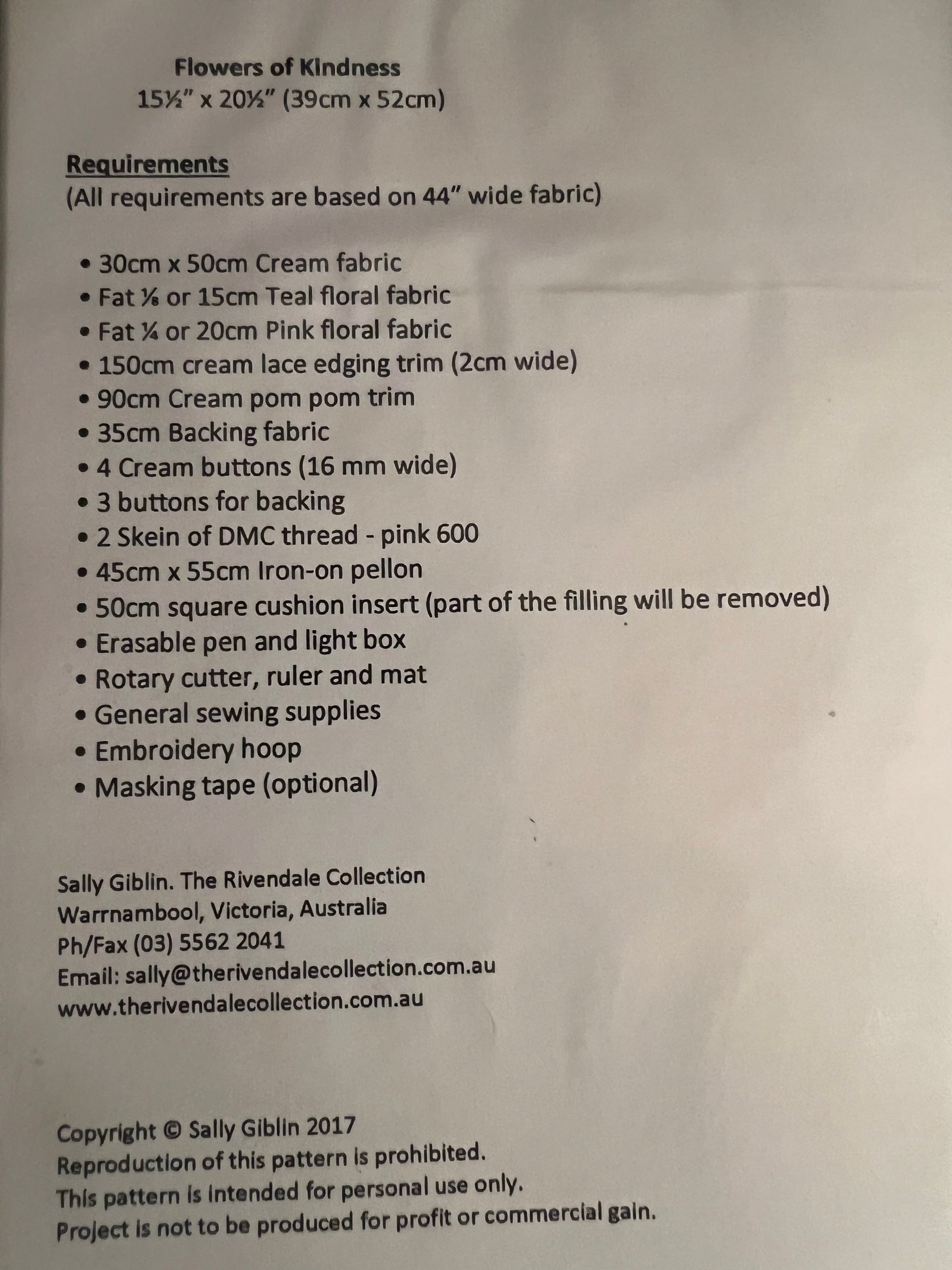 Flowers of Kindness by The Rivendale Collection Sewing Pattern