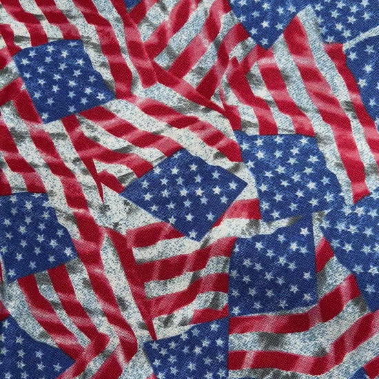 Bring patriotic flair to your next sewing project with this US Flag All-Over Cotton Fabric by Sykel Studio. Printed in a classic American flag pattern across a 43" wide bolt, this 100% cotton fabric is perfect for quilts, apparel, home décor, and seasonal crafts.